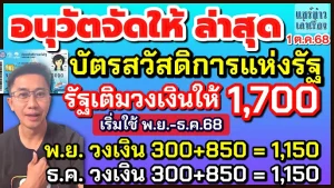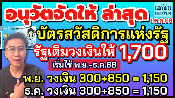 อนุวัตจัดให้ ล่าสุด บัตรสวัสดิการแห่งรัฐ รัฐเติมวงเงินให้ 1,700 เริ่มใช้ พ.ย.-ธ.ค.68 รับเดือนละ 1150อนุวัตจัดให้ ล่าสุด บัตรสวัสดิการแห่งรัฐ รัฐเติมวงเงินให้ 1,700 เริ่มใช้ พ.ย.-ธ.ค.68 รับเดือนละ 1150