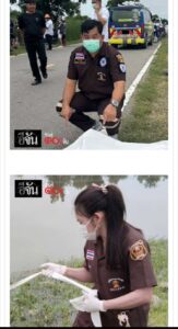 ที่เกิดเหตุ พบผู้เสียชีวิตเป็นหญิง ผมยาว สวมเสื้อลูกไม้สีขาว สวมกางเกงขาสั้น นอนคว่ำหน้า อาสามูลนิธิสุขศาลานุเคราะห์นครปฐม จึงช่วยกันนำขึ้นมาจากน้ำ
