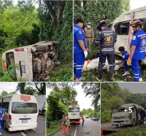 โดยมีผู้โดยสารเป็นนักเรียนของโรงเรียนแห่งหนึ่ง จากการตรวจสอบมีนักเรียนชายและหญิงได้รับบาดเจ็บ 3 คน และมีนักเรียนถูกรถตู้ทับร่าง 1 คน ทำให้เสียชีวิตในเวลาต่อมา ทราบชื่อคือ นาย จ. (ขอสงวนนามสกุล) อายุ 18 ปี ใกล้กันพบรถยนต์ ยี่ห้อนิสสัน ทะเบียน ขอนแก่น สภาพเสียหลักอยู่ข้างทาง