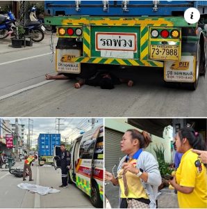 ขณะขับมาถึงหน้าโรงน้ำแข็งวรกิจ หนุ่มลาวที่ทำงานอยู่ในบริเวณนั้นได้เดินตัดถนนกะทันหัน พี่ชายเบรกไม่ทัน รถพุ่งชนอย่างแรง ชายลาวเจ็บสาหัส และรถก็เสียหลักล้มจนร่างสองพี่น้องกระเด็นเข้าไปใต้ท้องรถเทเลอร์ 18 ล้อที่ขับมาถึงพอดี