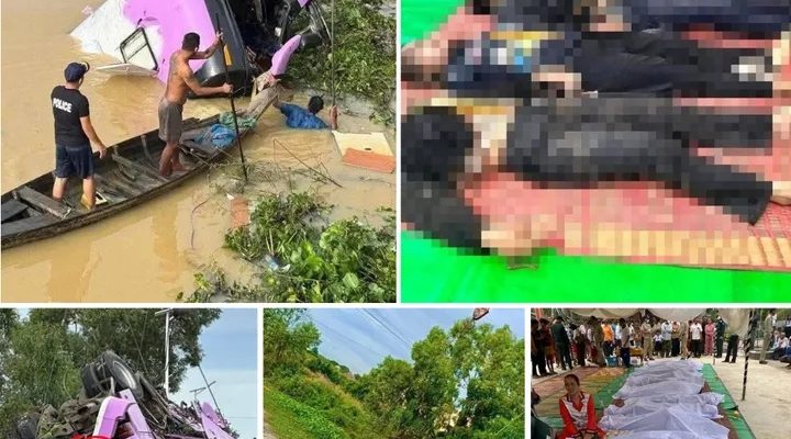 เกิดอุบัติเหตุร้าeแรงในจังหวัดกัมปงธม ประเทศกัมพูชา เมื่อรถบัสโดยสารที่เดินทางจากจังหวัดเสียมราฐมุ่งหน้าเข้าสู่กรุงพนมเปญ พุ่งชนเสาค้ำสะพานในเขตพื้นที่ภูเขา ก่อนตัวรถจะตกลงไปในน้ำ ส่งผลให้มีผู้เสีeชีวิต 13 ราย และบาดเจ็บอีก 24 ราย ทั้งบาดเจ็บสาหัสและบาดเจ็บเล็กน้อย