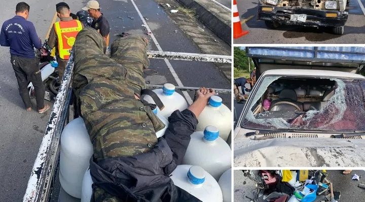 รถกระบะส่งน้ำเล่าว่า “เบรกไม่ทัน… รถเขาเสียหลักเข้ามาตรงหน้า” เพียงเสี้ยววินาทีที่คุมรถไม่ได้ กลายเป็นโศกนาฏกsรมที่ไม่มีวันย้อนคืน